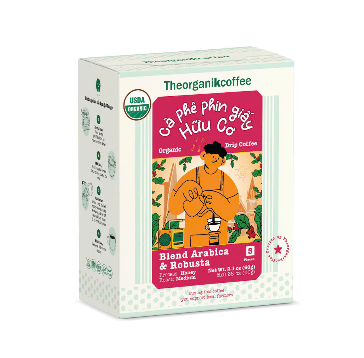 Box with 5 filters | Organic | 100% Organic Arabica, Robusta coffee | 12g per sachet. This coffee comes with a medium roast